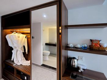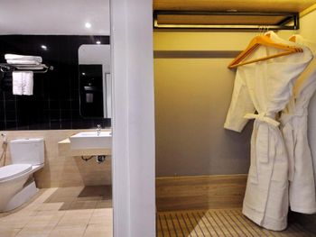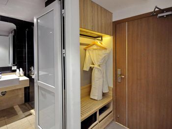 Вода из душевой кабины через стену попадает на пол комнаты. Приходилось просить туалетную бумагу, мыло и кофе. В уборку входит, по сути, только замена полотенец. Полотенца приносили с дырами. Постельное белье меняли от силы пару раз за две недели. При выселении нам не хотели возвращать депозит, так как якобы в номере отсутствовала одна пара ужасных резиновых тапочек (которыми мы, естественно, не пользовались), пришлось подниматься с ними и показывать, что они в шкафу, где и были. Они даже не догадались его открыть.