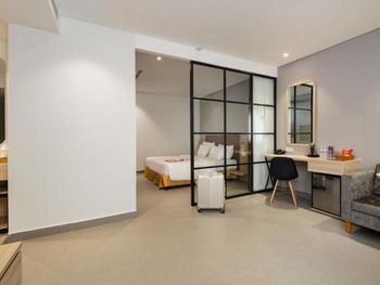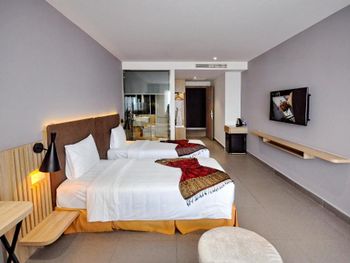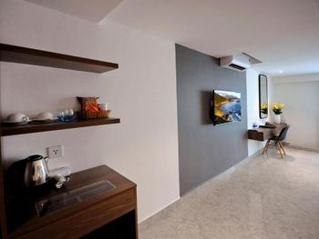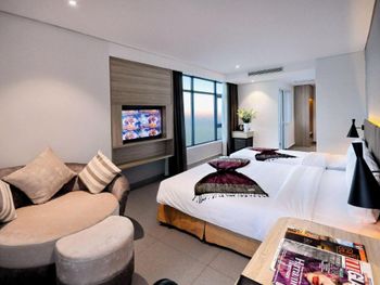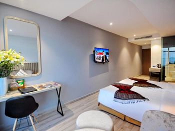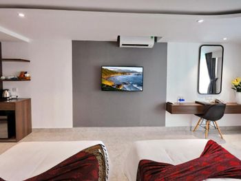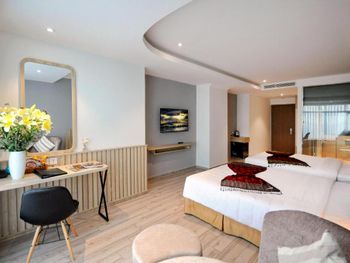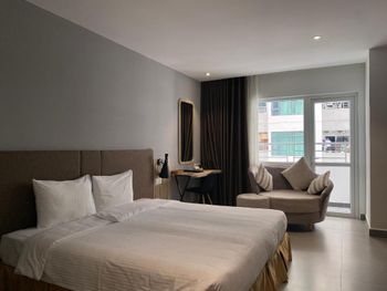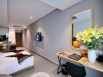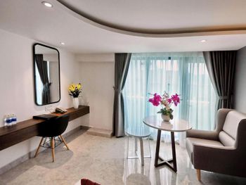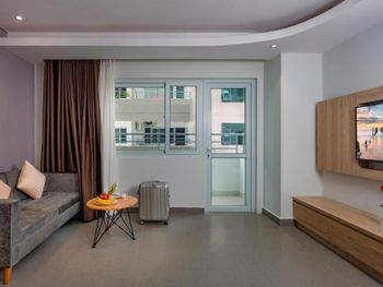 До центра нужно ехать на автобусе или такси, отель занимает несколько этажей остальное кондо. Из шести лифтов работало только половина, ждать приходиться очень долго в лифте как в старом и очень грязном трамвае. Движение людей сильное ,поэтому останавливается почти на каждом этаже. Номер с виду приличный и красивый, чистый ,но вернувшись с прогулки около 23.00 почувствовали сильный запах мочи!!! Ужас и с этим запахом который временами усиливался мы прожили еще сутки. И запах шел не с ванной комнаты... На первом этаже очень хорошее кафе. Русских жителей 80% основная масса из них живет на долгий срок. Если на несколько дней лучше останавливаться в центре.