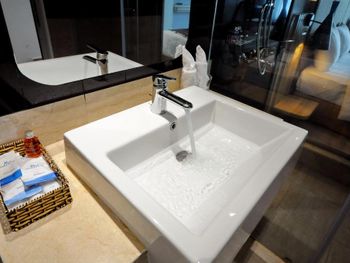 После того, как мы помылись в душе в комнату из под стекло (там вместо стены стекло), начала течь вода!