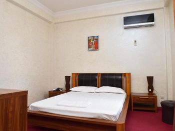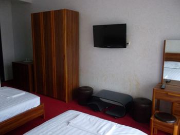 Во первых. Во время бронирования, указаны площадь номеров, так вот, она завышается примерно в два раза. Выбрав номер35м, нам представили около 20. На наши замечания, администратор лишь развел руками -мол, больше номер стоит дороже. Ладно, в том было нереально, доплатили около10 долларов. Нам дали, якобы, люкс. В этом *люксе* ни холодильник не работал, ни кондиционер, а слышимость такая, что всю ночь знали какой счёт в игре нарды у администратора, и какие телепередачи он смотрит. Найти какой либо компромисс, не удалось. На всё нам разводили руками. Мол это не кондиционер не работает, а вы пользоваться не умеете, а это вообще не холодильник, а термос! В общем шок да и только.