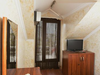 Номер за 4 ночи ни разу не убирали. Поэтому это не гостинца, а гостевой дом. Очень неудобная ванная комната — у душевой нет поддона — вода стекает на пол и долго высыхает, запах затхлости все время. Очень скудные завтраки.