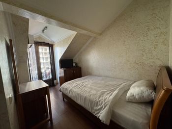 Вежливые и доброжелательные администраторы на ресепшн. По моей просьбе встретили на вокзале и при отъезде договорились о трансфере с таксистом. Один из администраторов - Леван-предлагал экскурсии, но у меня уже были наводки. Убирали, как мне кажется, ежедневно.