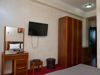Ужасный персонал и невозможные условия. Во первых. Во время бронирования, указаны площадь номеров, так вот, она завышается примерно в два раза. Выбрав номер35м, нам представили около 20. На наши замечания, администратор лишь развел руками -мол, больше номер стоит дороже. Ладно, в том было нереально, доплатили около10 долларов. Нам дали, якобы, люкс. В этом *люксе* ни холодильник не работал, ни кондиционер, а слышимость такая, что всю ночь знали какой счёт в игре нарды у администратора, и какие телепередачи он смотрит. Найти какой либо компромисс, не удалось. На всё нам разводили руками. Мол это не кондиционер не работает, а вы пользоваться не умеете, а это вообще не холодильник, а термос! В общем шок да и только. Кстати матрасы вообще ужас, в общем выспаться нам не удалось.
