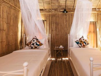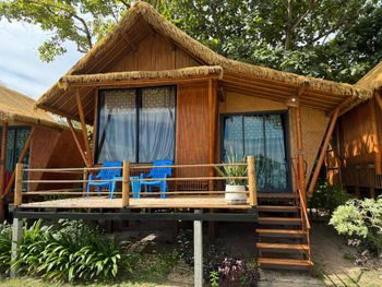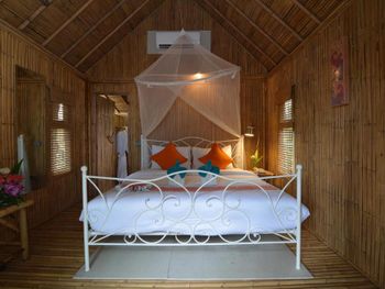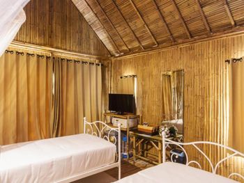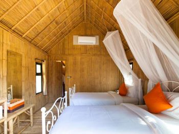 Впервые жили в бунгало из тростника. Хорошие виды на закате. Завтрак прямо на берегу.