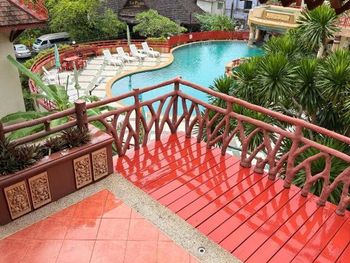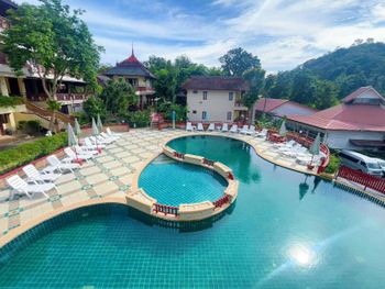 Узнали, что такое отель в тайском стиле. Наверное, когда-то он был крутым, сейчас видно, что его лучшие времена прошли. Завтраки не настолько плохие, как описывают, ожидал худшего, но нет, всё нормально: пара тайских блюд (суп и второе) яичница, сосиски, ветчина (из курицы), картошка или картошка фри, кофе в капельной кофеварке, на десерт - брауни или оладушки. Есть нарезка фруктов и овощей, вот за овощи плюс - там был дорогой заморский болгарский перец. Бассейн большой. Есть бар в бассейне и вроде бы гидромассажный отдельный бассейн, но не видел, чтоб он был включен. Лифта нет, если кому важно. Насекомых в номере тоже не было: ни муравьев, ни тараканов. Ванная комната кажется страшненькой, но зато нареканий по напору воды нет. Он мощный, бесперебойный и держит температуру. Это еще плюсик к отзыву. Номер у нас был большой, но пустой и бестолковый. Мебель не современная, над кроватью - цветастый балдахон-пылесборник. В номере есть холодильник, чайник, пару стаканов. На зубную пасту и зубную щетку не рассчитывайте, Если допроситесь уборку номера, на дверь вам повесят пакет с бутылкой воды 0,5 на человека и маленьким шампунем и гелем для душа. В целом, попробовали, узнали, что это такое, этот стиль отелей оказался не наш.