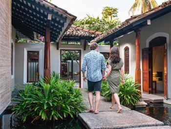 Прекрасная территория и бассейн, очень красиво. Гамаки, механические лежаки, газон, зонтики, много мест для релакса. Отель находится на пляже talpe beach-очень уединенный, небольшой пляж, на котором можно позагорать. Номер прекрасный: мини вилла, есть диван, большие кровати с балдахином, большая ванная-приятно быть в номере! Незаметный сервис: нас сразу привели в номер, без торчания в лобби (его там по факту и нет) и также быстро рассчитали прямо в обеденной зоне у нашего номера. Очень уединенная зона.