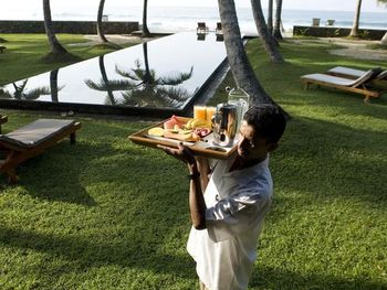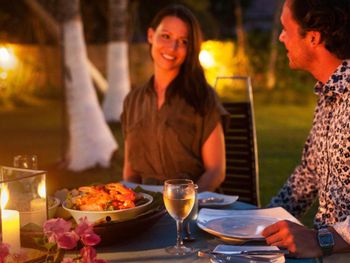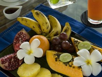 На вилле предусмотрена доставка еды непосредственно в люксы; в меню представлены морепродукты и блюда западной кухни. В баре гостевого дома можно в любое время дня заказать напитки и закуски.