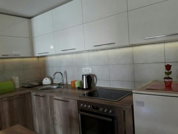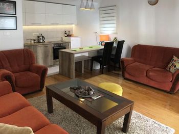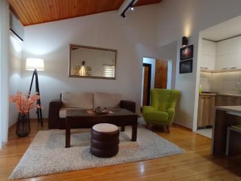 очень понравилось месторасположение, тихая улица, все в шаговой доступности. Ключи получили раньше , чем было написано, в 11 уже разместились, Очень чистые апартаменты, все необходимое для проживания было под рукой, никто не контролировал, были сами себе хозяева. Целый шкаф чистых полотенец, чистая ванная комната. Для друзей вообще хорошо, двухэтажные апартаменты очень удобно. Хороший балкон для вечернего чаепития. Остались очень довольны. Прямо напротив ресторан. Спасибо большое.