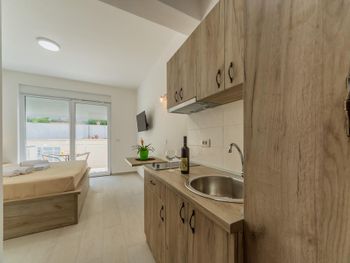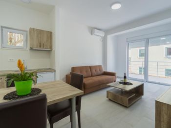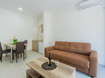 Отличное местоположение. Приятные хозяева. Очень чистые ,аккуратные и теплые апартаменты. Подходят для длительного проживания. Раз в неделю делают отличную уборку и замену белья. Раз в неделю при длительном проживании можно пользоваться стиральной машинкой бесплатно. Отличный вайфай. До пляжа Лучице 7 минут пешком.