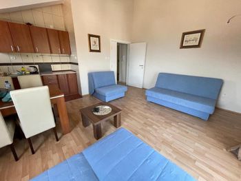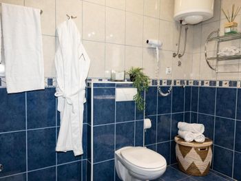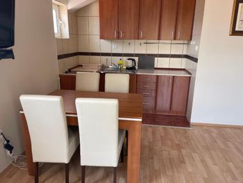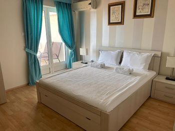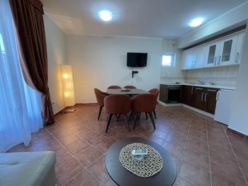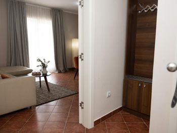 От моря очень далеко. Если без машины и с ребёнком то очень тяжело! При бронировании я понимала что это не настоящие 4 звезды. Но я люблю маленькие семейные отели обычно они душевные и радушные. Не здесь. Никого никогда небыло на ресепшине и нам никто при заселении не дал номер телефона чтобы связаться с кем-то. Поэтому у нас возникли следующие проблемы. Мы в первую ночь сильно замерзли, как позже выяснилось, кондиционер не работал и его починили только на 4-й день нашего пребывания. И весь следующий день мы пытались кого-то найти, чтобы попросить обогреватель. У нас ни одного раза за 6 дней не убрались добровольно. Один раз поменяли полотенца и когда мы поймали сотрудника всётаки помыли полы. В первый день душ протекал и залил всю ванну, мне пришлось постелить полотенце на пол чтобы ходить к унитазу, потом душ как-то самоисцелился и потёк снова только на 4 день, но к концу нашего прибывания опять перестал. В номере всё было спланировано для неудобства клиента, например чтобы выключить прикроватную лампу нужно было физически выкрутить горячую лампу накаливания или кто-то догадался поставить маленькую мойку в дальний угол углового кухонного шкафа, комфортно мыть посуду может только человек с 1,5 метровыми руками. Да, кстати, на кухне нет даже соли, поэтому везите все продукты с собой. Менеджер там вообще "большой молодец". При бронировании я спросила про бассейн, т.к. мне было это очень важно. Мне ответили что пока он не работает, но к нашему приезду всё будет. Нет! Не было и никто нас не предупредил, на самом деле и погода подкачала плавать мы бы всё равно не смогли, но предупредить было бы честно. Никто в отеле не говорил по-английски, только сербский! Хотя нет, в последний вечер к нам пришла англоговорящий администратор и попросила расчитаться, раз уж она здесь, ведь утром никого не будет. А и в довершение, в одну из ночей в нашей спальне с потолка свалился кусок краски-штукатурки.