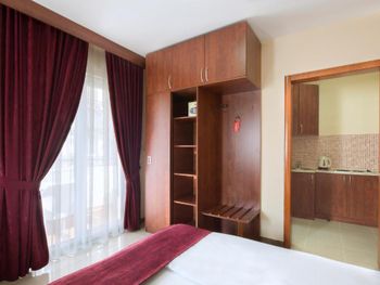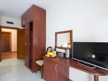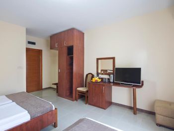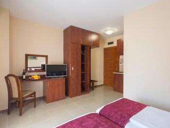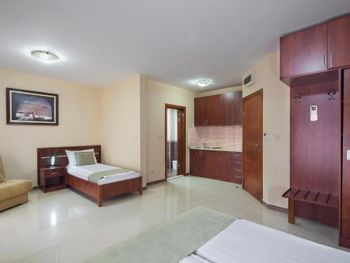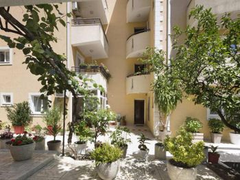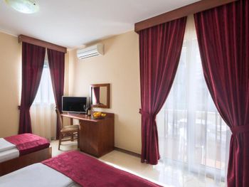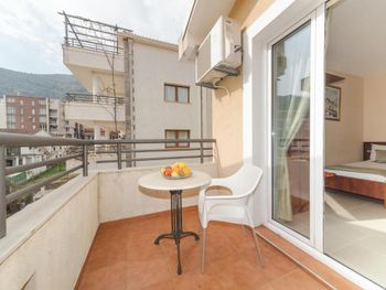 Расположение - супер! Рядом есть ВСЕ- пекарня, которая работает 24 /7 - где можно перекусить и выпить кофе, небольшой магазин, где есть все необходимое, большой супермаркет, турагенство, недалеко остановка автобусная, хороший подъезд для такси, если пешком или с ребенком - то ножками топать тоже отлично - никаких подъёмов вверх и никаких закаулков - 2 минуты и ты в центре, на набережной, пляж Словенкий - 3-4 мин пешком, диско OMNIA)))) Гостиница небольшая, но уютная, чистая, ухоженная. Зеленый двор в цветах и фикусах! НЕ шумно , а с террасы открывался шикарный вид на горы и атмосверный вид на другие гостиницы.