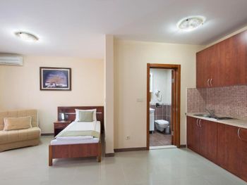 Очень довольны временем, которое провели в Salus. Приехали чуть раньше, хозяйка - очень приятная девушка, встретила нас лично, познакомились. Нас угостили ракией с соком, было очень приятно и неожиданно. Заселили в номер-студию с шикарным видом и балконом, на котором каждое утро мы пили кофе. Номер просторный, есть вся необходимая техника. Идеально чисто! Уборка производится ежедневно. Расположен отель в 5 минутах от старого города, рядом есть минимаркет, Зелёный базар, бюро экскурсий, кондитерская, прокат автомобилей - вобщем вся инфраструктура. Обязательно сюда вернёмся