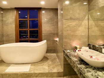 Мы жили на 13 этаже - это у них 12А, на первой неделе у нас на балконе сломалась металическая часть балкона, о чем мы сказали сразу горничной , которая пришла сфоткала , кому то отправила, и откровенно смеялась. Сказав все ок, но мы вечером подошли на рецепшен сказали проблему и показали фото что часть ограждения лежит на полу- ответ ок, мы там прожили еще 2 недели так и уехали - никто ничего не сделал. Плюс там еще две палки если надавить отлетят, а это 13 этаж- и учитывая что балкон всего 1 метр на две комнаты. плюс сломался замок куда прикладывать карточку в комнату, тоже не сделали - я сама заклеила скотчем. Уборка тоже странная, да она каждый день- убирают сразу втроем, но это как у семи нянек дитя без догляду, то воду забудут положить, то чай и кофе, то мыльные принадлежности. Да и уборка - балкон убрали один раз и то по моей просьбе, пыль на шкафу не вытерал там наверное очень долго. И да мойте всегда посуду сами, для них наверное норма - я зашла а комнату один раз еще убирали, у нее упала ложка, она ее подняла об себя вытерла и положила на место, при том что я была в комнате. Завтрак - норм, только если пьете кофе без сахара то не получится, в молоко его добавляют и очень много. Как для меня было не комфортно в холле они жгли свечи и благовония, мне некоторые зарази аж до тошноты. Плюс в многих номерах плохой слив воды в ванне, она стоит и следовательно если там не открывать окно - запах ужас, я даже хотела переехать а другой номер- но открытое окно спасала, и лень было все вещи собирать