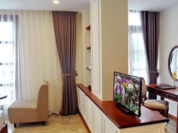Хорошее расположение, в тихом переулке, 5 минут до пляжа. Просторный, чистый номер, удобная постель. Достаточно удобно расположен кондиционер - дует в нижнюю часть кровати. Много вариантов освещения.