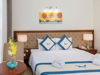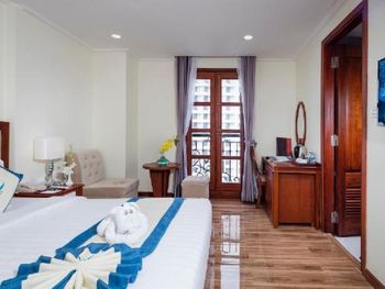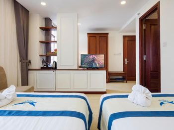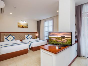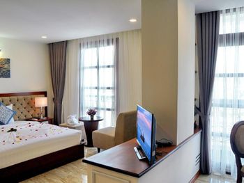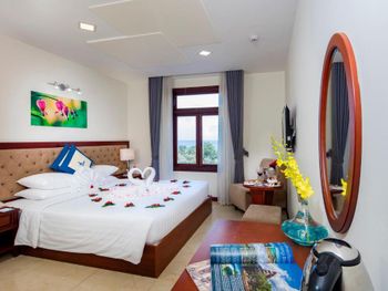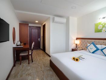 Преимущество отеля - его расположение. В самом центре, рядом с пляжем (5 мин. пешком). В целом чисто, номер каждый день убирали. Один раз не убрали, вечером сказала об этом администрации, тут же пришла горничная и быстро убрала. Завтраки приемлемые, сытные и разнообразные (суп, горячее, каша, жарят омлет, сладкое и главное, каждый день, разные фрукты), но, как и вся еда во Вьетнаме, все невкусное, пресное.