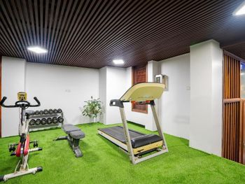 Лучший бассейн на крыше! Чистый с видом на море, немного прохладный, но глубокий - 1.4 метра. Тут же 2 тренажёра (один сломан) и есть гантели, удобные лежаки.