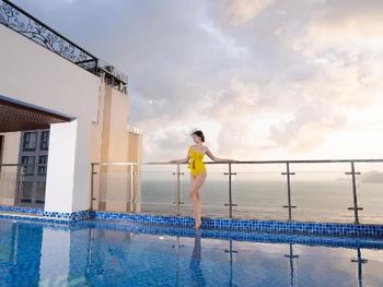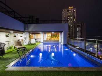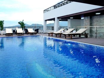 Лучший бассейн на крыше! Чистый с видом на море, немного прохладный, но глубокий - 1.4 метра. Тут же 2 тренажёра (один сломан) и есть гантели, удобные лежаки.