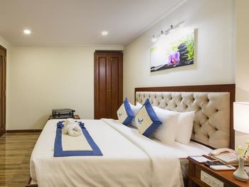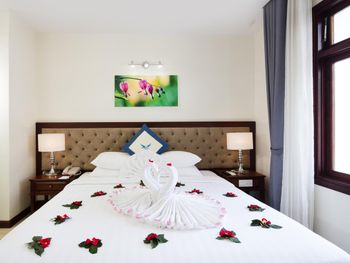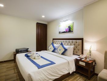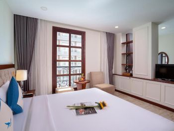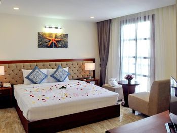 Преимущество отеля - его расположение. В самом центре, рядом с пляжем (5 мин. пешком). В целом чисто, номер каждый день убирали. Один раз не убрали, вечером сказала об этом администрации, тут же пришла горничная и быстро убрала. Завтраки приемлемые, сытные и разнообразные (суп, горячее, каша, жарят омлет, сладкое и главное, каждый день, разные фрукты), но, как и вся еда во Вьетнаме, все невкусное, пресное.