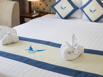 шведского стола на завтрак как было заявлено не было вообще, первую неделю кормили одним и темже с незначительным различием ингредиентов супа, вторую неделю когда заселилось больше людей дали выбор рис/лапша и омлет/глазунья, фрукты всегда одни и теже драконий+арбуз+маракуя, вторую неделю маракуя кончился насовсем. Бар на крыше пуст, возможно если прийти туда и вызвонить когонибудь с кухни может бы кто и пришел обслужить причем за немалый прайс, но персонал отеля по английски еле еле понимает такчто общаться, искать и ждать пока ктото там придет - ужасный сервис. Сейф не рабочий, программированию на новый пароль не поддается, кондиционер даже на минимальных оборотах завывает порывистым ветром как умирающий. Тапочки в номере самые ужасные в мире как внешне так и ощущения при ходьбе.