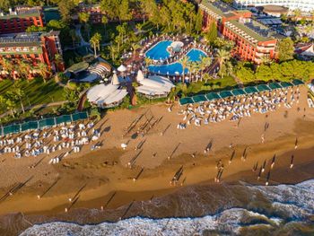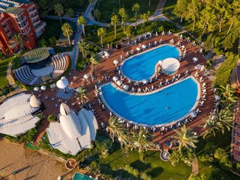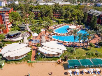 1. Первый и самый огромный плюс - это расположение. Прямо на берегу моря, море теплющее, мелкое, камней нет, заход прекрасный. 2. Также плюс, что можно пользоваться инфраструктурой соседних 2ух отелей, в которых есть водные горки. 3. Шоу очень крутые, но в соседних отелях. 4. 2 больших бассейна с теплой водой. 5. Вкусное мороженное, но до него надо идти.