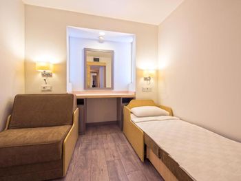 Маленький номер Очень плохое освещение а номере Нет вентиляции в ванной Неудобная душевая лейка для детей - очень высокая Детские кровати неровные, потому что это диван, который состоит из двух частей и одна часть выше другой.