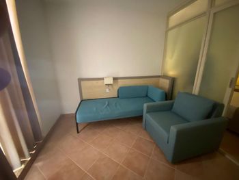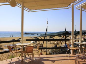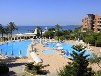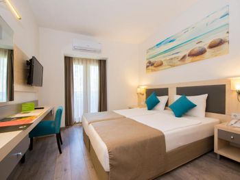 Очень шумно -- автострада в 50 метрах от гостиницы и, несмотря на то, что мой номер выходил на море, а не на дорогу, ночью создавалось впечатление, что сплю на остановке. Плохой ресторан. Просто невкусная еда, очень скученно (это и пляжа касается). Платный вайфай. 5 увро/деь -- 15 евро\неделя на одно устройство одновременно. Через 2 дня я переехал в RESORT HOTEL-- соседнее здание на той же территории -- небо и земля при небольшрй разнице в цене. Так что рекомендую сразу этот отель