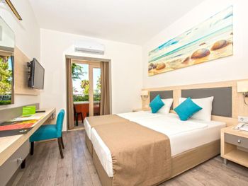 Питание просто отличное, разнообразное, все было очень вкусно. Пляж лучший, ни одного камня, вода чистейшая даже при волнах. Красивая, зелёная территория. Персонал все молодцы, очень вежливые. Возможность пользоваться инфраструктурой соседних отелей Пегасос.