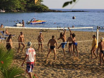 Пляж, мелкий заход в море, песок - идеально для детей. Большая территория, объединенная с другими корпусами. Прекрасное питание! Даже шикарное! Классные вечерние шоу и мини диско. Вежливый персонал.