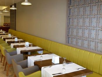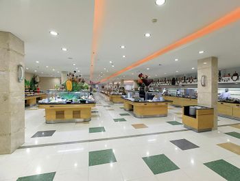 Еда вкусная и разнообразная, обслуживают быстро, несмотря на ограничения из-за covid 19. На входе измеряют температуру и выдают маски.