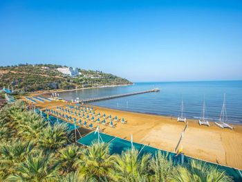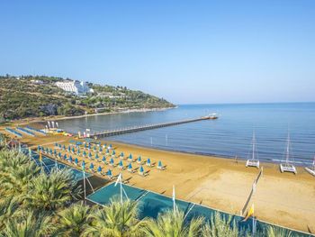 Очень хороший пляж, с пирсом в море , прекрасная территория , зеленая , отличный номер .