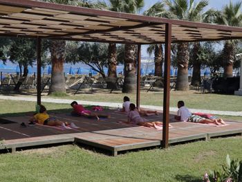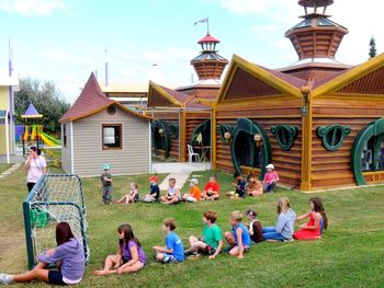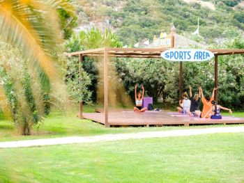 Достаточное кол-во тени, где можно полежать в гамаках или на газоне.
