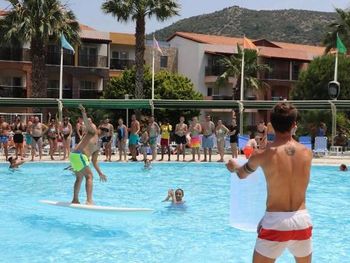 Анимация для детей и взрослых на отлично!!! Очень красивые живые концерты на закате. Для детей шоу и дискотеки вечером с заводными аниматорами)). Аквапарк небольшой по территории, но хороший по наполнению, горки для детей и взрослых, волновой бассейн, "река", бассейн с баром и т.д. интересно было и детям, и взрослым.