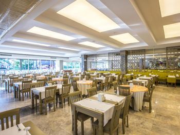 Мест отдыха хватало всегда! Персонал рецепции, администраторы, обслуживание в ресторане (шведский стол) - на высоте!, приветливое, дружелюбное отношение. Русскоязычный администратор Алиса договорилась о позднем выезде. Спасибо ей!! Питание хоть и без мореизыск - разнообразно! Очень много разного мясо (свинину не видел), овощи, зелень. Аквапарк, анимация, вечерние шоу! Детям любого возраста и родителям с малышами!!!