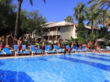 В этом отеле всё сделано для детей. Начиная от бесплатного аквапарка и заканчивая мини-диско. При этом есть отдельная зона бунгало со своим бассейном "только для взрослых". Мы были вдвоём с женой, молодёжи тоже хватает, весёлые дискотеки на пляже, на море до ночи! Территория огромная, ухоженная. Охраняемая бесплатная стоянка для машин. Развлечения на любой вкус: и хамам, и аквапарк, и велосипеды, и спортзал, и анимация! Плюс близко к Эфесу, на машине 4-5 минут. До центра Кушадасы 10 минут на машине по красивому серпантину вдоль моря! Еда на любой вкус. Алкоголь льётся рекой, поэтому все весёлые! Алкоголь местный! Состояние номеров не новое, но вполне приличное. Цена-качество соответствует. В целом отелем остались довольны! Рекомендую!!!