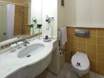 Номера требуют ремонта, дверная ручка и выключатели отваливались, из санузла неприятные запахи, в душе вода сама меняла температуру. За 250€ в сутки этого не должно быть