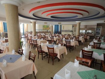 Мебель разваливается. Ресторан грязный. На полу валяется еда, столы как следует не протерают. Вилки , ножи постоянно нужно было искать. Конечно , многое зависит от культуры поведения самих людей . Но таких грязных ресторано еще не видела! На всех тарелках налипшая еда. Завтраки ужасные, есть нечего. Булочки черствые, сосиски как из бумаги, сыр и бобовые. Единственное что я ела на завтрак -это сухой завтрак(хлопья с молоком). Молоко естественно порошковое но слишком уж разведенное водой.