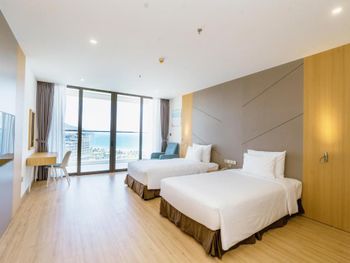 Близко к аэропорту, 150 000 донгов на такси, чистая большая комната, панорамный вид, есть капучино на завтрак. Еда в ресторане разнообразная и даже вкусная, однако есть НО...