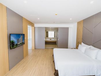 1.На выходные в отель заезжает миллион вьетнамцев семьями на все включено. Ресторан превращается в полный кошмар. Дети играют в салочки между столами с едой, пока взрослые употребляют бесплатное пиво. Столик найти невозможно, люди дерутся за еду и за место, очень грязно становится в столовой, везде валяется недоеденная еда, персонала не хватает, чтобы всё убрать. Потом они курят в холлах отеля и устраивают вечеринки в номерах. 2. Панорамные окна в номере при сильном ветре вибрируют, стучат и собираются улететь. 3. При заселении не могли найти бронирование. И ещё выдали бумажку со штрафами за всё, как будто мы собирались сразу все в отеле разломать, включая белые тапочки в номере. Это было крайне не приятно. 4. Персонал вообще не контактный. Вообще ни на каком языке не хотят ничего понимать (вьетнамский северный диалект плохо понимают, английский совсем плохо понимают, русский вообще никак не понимают).