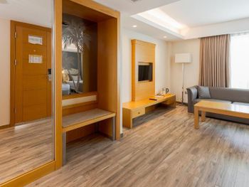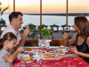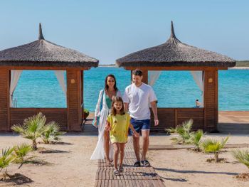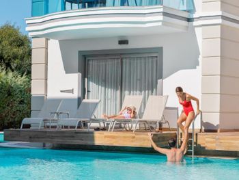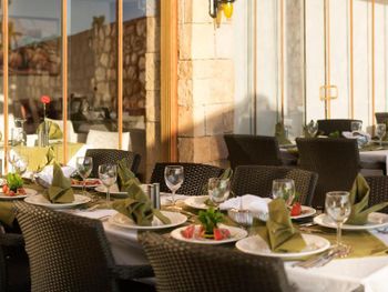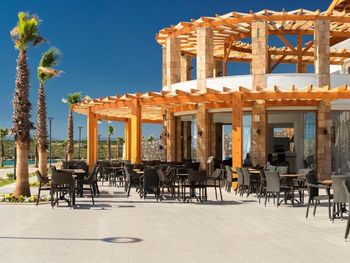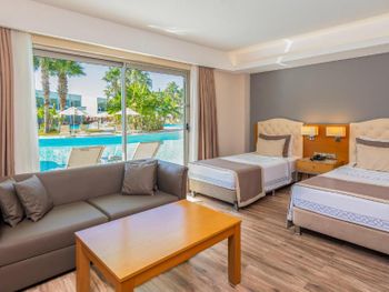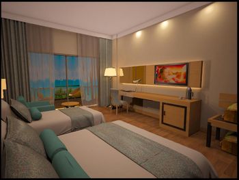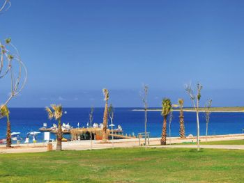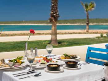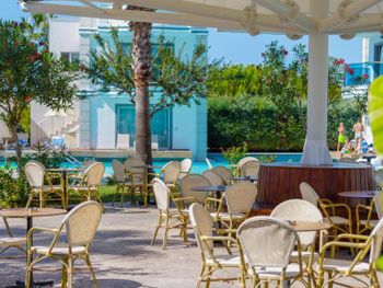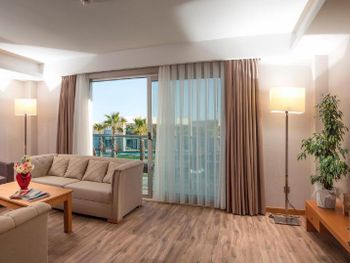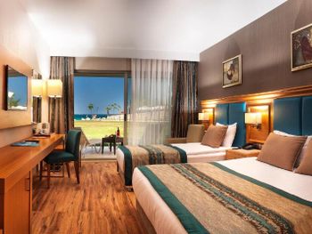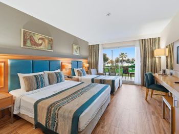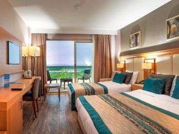 Из некоторых номеров открывается вид на море или на бассейн, а в некоторых обустроена гостиная зона. В числе стандартных удобств — телевизор с плоским экраном и собственная ванная комната. Предоставляются тапочки и фен.