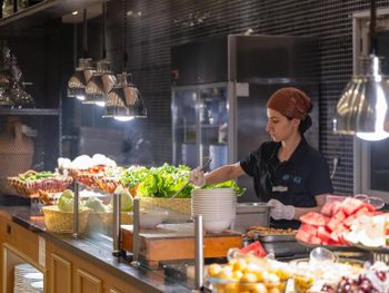 Большой отель, куча бассейнов . Есть подогреваемый уличный и внутри здания. Чистая территория. Еда отличная, на любой вкус. Очень разнообразная. Персонал приветливый.
