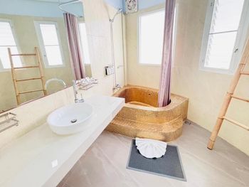 Великолепный отель. Мы занимали номер-студию с собственным бассейном. Все фотографии на сайте полностью соответствуют действительности. Небольшой персональный бассейн — главная «фишка» номера, именно из-за него я выбрал этот отель и выбор полностью оправдался. Прекрасные ощущения, когда утром, едва открыв глаза, можно сразу окунуться в воду. Море во время прибоя бьётся практически в стены номера. Нет ничего лучше, чем вечером сидеть на террасе, читать книгу и слушать шум волн. При этом, никаких других звуков нет — идеальное место для отдыха. У нас была машина, поэтому путь на пляж Ао Нанг занимал 7-10 минут, в округе есть несколько атмосферных рынков с фруктами и невероятной местной едой. Буквально в 3-5 минутах езды находится пристань, откуда на кораблике можно отправится на острова или на Рэйли. Собственная парковка, несколько больших бассейнов, красивая и ухоженная территория, а главное — неповторимые, потрясающие виды вокруг на окрестные горы и море. С удовольствием вернусь сюда сам и буду советовать друзьям и знакомым