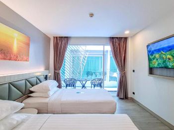 В самой дешевой категории номера, не было балкона, но ладно балкона сушилки тоже не было. Хотя отель в 5-ти минутах от пляжа и как бы пляжный, да и с бассейном. Вещи сушили как попало на чем только возможно. Конечно же было неудобно. Видела часть номеров где писали что вид на балконы друг друга и там действительно можно лазить в гости, плюс такие номера в тени. Бассейн на крыше очень маленький и неглубокий. Сам пляж Патонг оказался грязным и с кучей торгашей. Неудобно и неуютно. Так что вариант только для любителей ночной жизни больше .