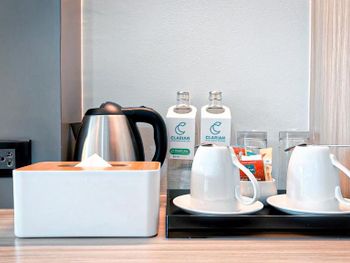 Номера требуют ремонта. Вся мебель в ужасном состоянии. Пол был ужасно грязный. 5 минут хотьбы в носках и они были чёрные (очень грязные). Вызвали уборщицу, её уборка ситуацию не справила. Сток в душе был забит. Пришлось вызывать сантехника. Чайник был сломан, просили, что бы заменили. Номер на 4 звезды не тянет.