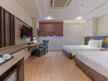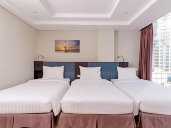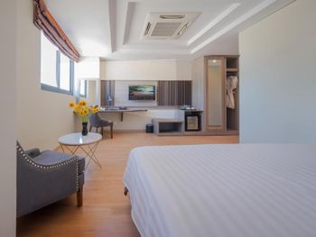 Гостинница находится рядом с рынком, неподалеку хорошая прачечная, недорогая парикмахерская, множество различных ресторанчиков. Для ребенка предоставили люльку. Кондиционер прекрасно работает. комплект полотенец из 2 шт. Всегда есть чай, кофе, сахар. Так же нам очень понравился бассейн. Из посетителей никого кроме нас.ребенок спокойно ходил по краю бассейна, тк поверхность очень шершавая . Окно было достаточно высоко, тк мы с ребенком, нам было в самый раз Кровать вроде Квин сайз, нам было достаточно