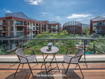 Номер: на 1-5 этажах, 75 кв. м, 2 спальни, кровать King-size и двуспальная кровать Queen-size, гостиная, межкомнатная дверь, мини-кухня, ванная комната, 2 балкона, вид на сад.