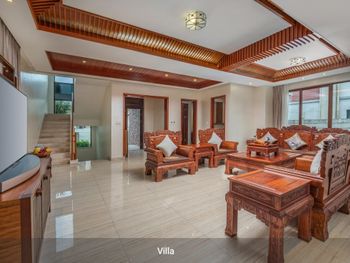 Номер: на 1-3 этажах, 280 кв. м, 3 спальни, 3 кровати King-size, 2 гостиные, межкомнатная дверь, мини-кухня, 5 ванных комнат, 2 балкона, собственный бассейн, вид на сад.