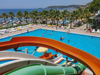 Чистый, уютный одним словом шикарный отель. Очень подходит семьям с детьми. Аниматоры просто супер, каждый день проводят разные игры у басейна, а вечером для детей танец а затем разные игры и представление. Есть басейн для детей, агуапарк. Он не так уж большой, но семьям с детьми пойдет. Еда очень вкусная, все есть на любой вкус, особенно понравилась пиде :) море очень чистое, но с камнями, поэтому не забудьте купить тапочки для моря. В lc-waikiki они стоят 35 TL (фото выложил сюда). В номерах убирали каждый день, меняли полотенце. Все комнаты с кондиционером, нет проблемы с горячей водой. В комнатах очень чисто, ремонт свежий. Отдельное спасибо Гасан бей за помошь, до приезда в отель отвечал на все вопросы через ватсап. Советую всем семьям обезательно хоть раз забронировать этот отель, не пожалеете.
