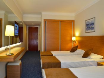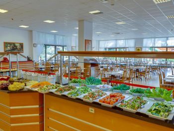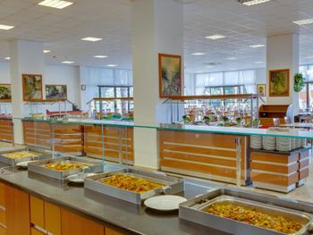 Перерыв между обедом и ужином с 16 до 19 вообще негде покормить детей. Лучше бы съела пиццу с 16 до 17. И в семейном двухкомнатном номере очень маленькое мусорное ведро, что странно для номера на 5-6 человек . И нет бутилированной воды, она платная.