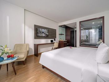 Air-conditioned contemporary-style rooms offer different stunning views of the city. Each room comes with a flat-screen cable TV with local Asia and International channels. They also have mini-bar as well as high-speed Internet access. Room service is available for guests’ convenience.