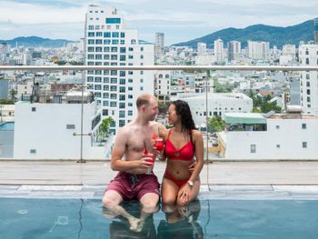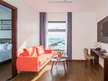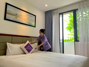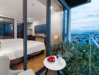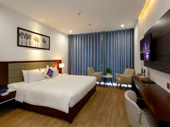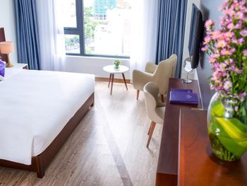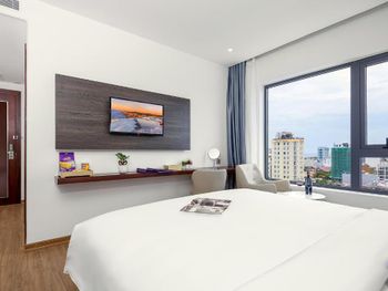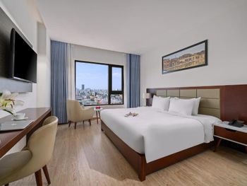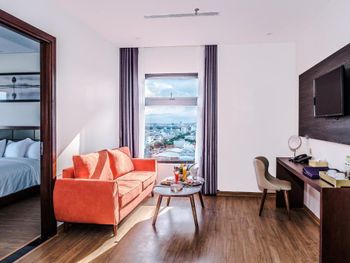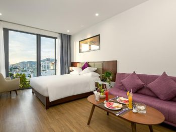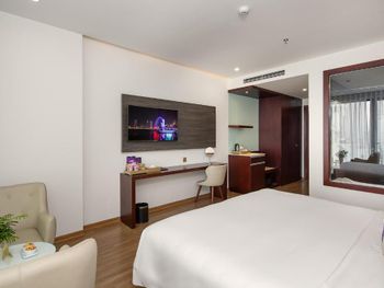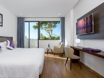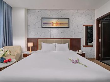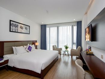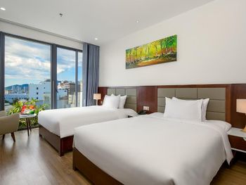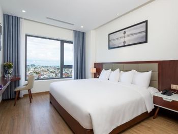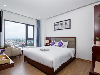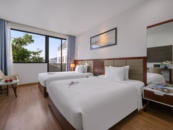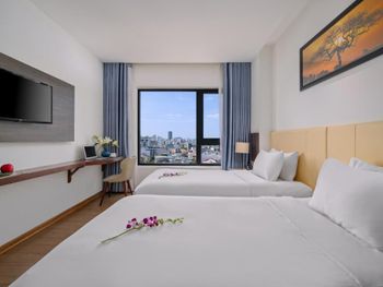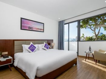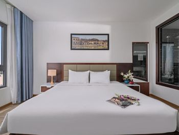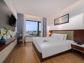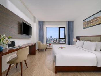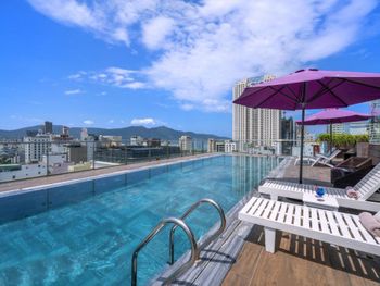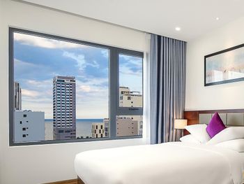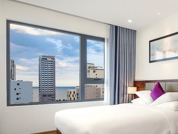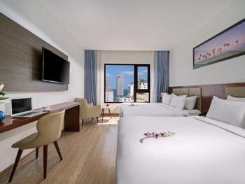 ОТЕЛЬ НОВЫЙ. ВСЕ ВИДЫ СЕРВИСА, ПРЕДОСТАВЛЯЕМЫЕ ОТЕЛЕМ, НА ХОРОШЕМ УРОВНЕ. МЫ ПОЛЬЗОВАЛИСЬ САУНОЙ, БАССЕЙНОМ, НЕМНОГО ТРЕНАЖЁРНЫМ ЗАЛОМ, УСЛУГАМИ МАССАЖИСТА. ПРОЖИВАЛИ ДВЕ НЕДЕЛИ И КАЖДЫЙ ДЕНЬ ХОДИЛИ НА ЗАВТРАК С УДОВОЛЬСТВИЕМ. КУХНЯ РАЗНООБРАЗНАЯ И ВКУСНАЯ. ПЕРСОНАЛ ВНИМАТЕЛЬНЫЙ, ДРУЖЕЛЮБНЫЙ. НАС ВСТРЕТИЛИ В АЭРОПОРТУ В 9 УТРА. УЧИТЫВАЯ СТРОЙКУ, ПРЕДЛОЖИЛИ НОМЕР НА ВЕРХНЕМ ЭТАЖЕ И СРАЗУ ЗАСЕЛИЛИ, НЕ ДОЖИДАЯСЬ 14.00 часов. ПРИ ВЫЕЗДЕ ПОДАРИЛИ НАСТОЛЬНВЕ ЧАСЫ С ЛОГОТИПОМ ОТЕЛЯ, БЫЛО ПРИЯТНО. ОТЕЛЬ НАХОДИТСЯ НЕ НА ПЕРВОЙ ЛИНИИ, ЧТО ДЛЯ ДАНАНГА ЯВЛЯЕТСЯ ПОЛОЖИТЕЛЬНЫМ МОМЕНТОМ: МОРЕ РЯДОМ, А ШУМНЫЕ ДОРОГИ В СТОРОНЕ. ПОНРАВИЛИСЬ МОРЕ И ПЛЯЖ.